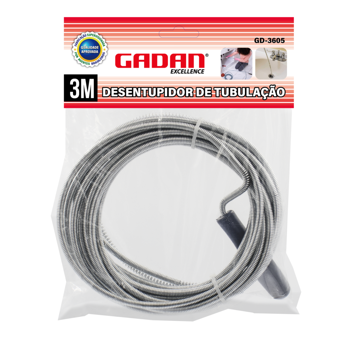 GD-3605 - CABO DE AÇO DESENTUPIDOR DE CANO E PIA MANUAL 3 METROS