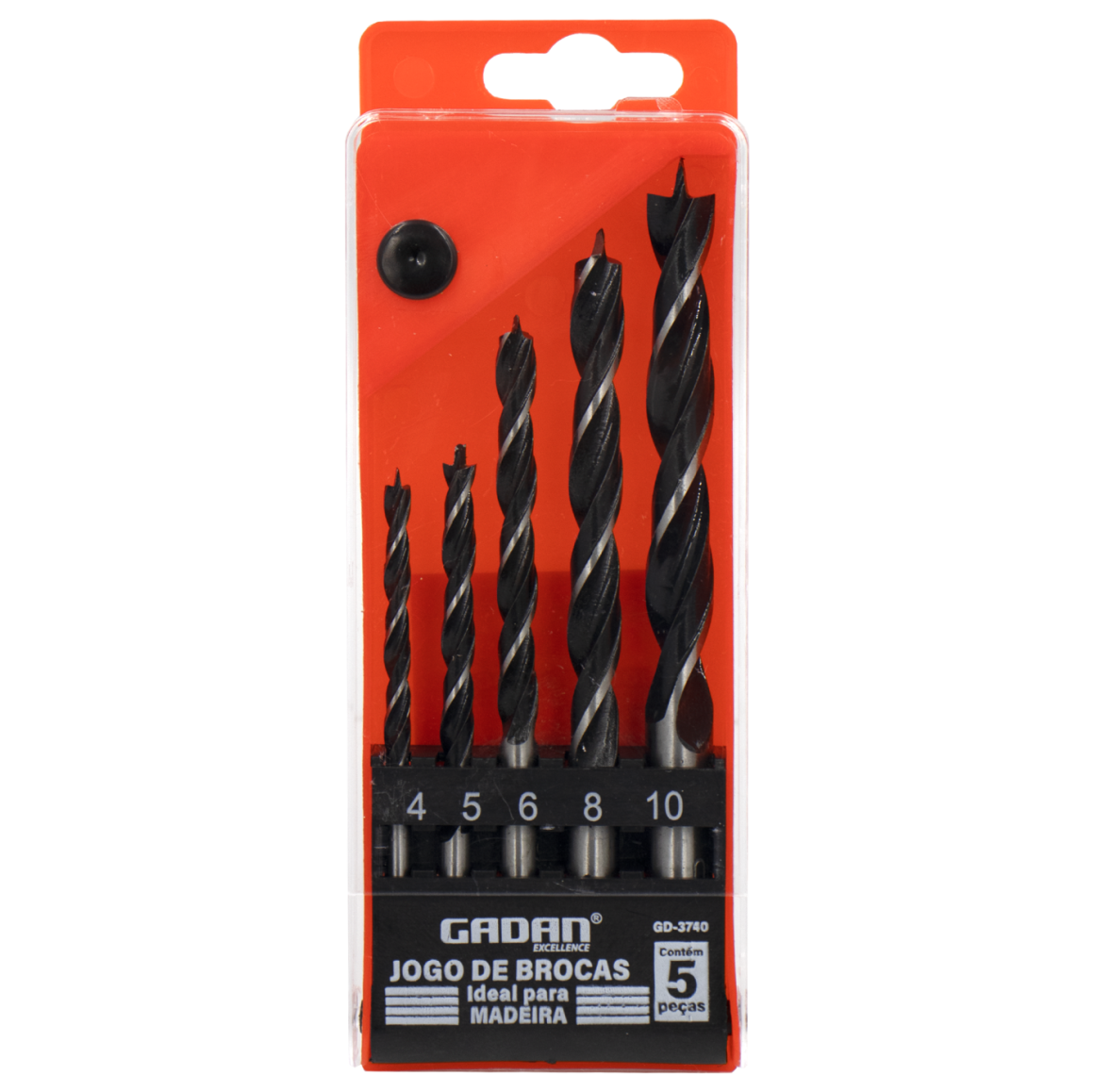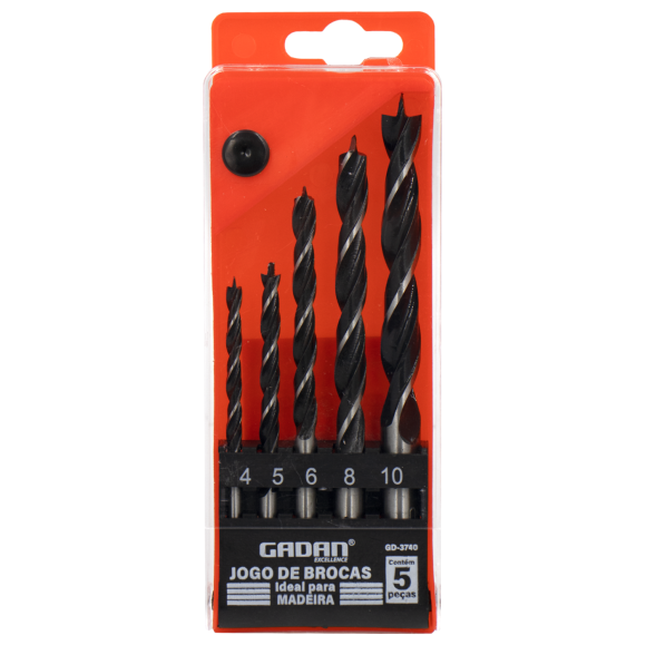 GD-3740 - CONJUNTO COM 5 PEÇAS DE BROCAS PARA FURAR MADEIRA 4/5/6/8/10MM