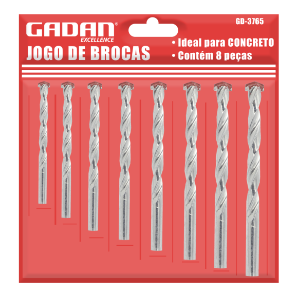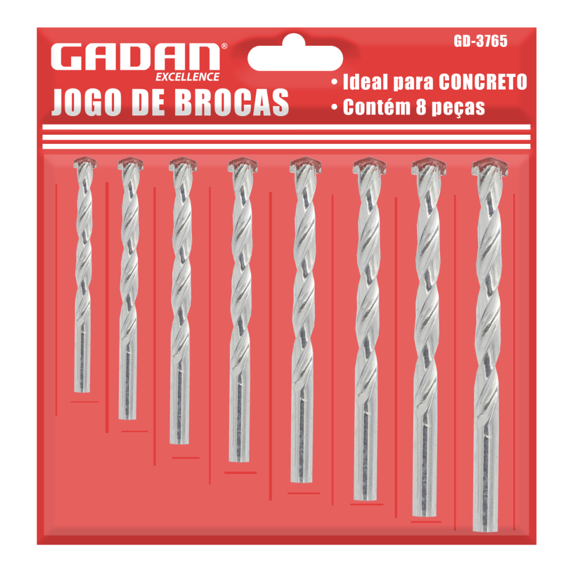 GD-3765 - CONJUNTO COM 8 PEÇAS DE BROCAS PARA FURAR CONCRETO 3/4/5/6/7/8/9/10MM