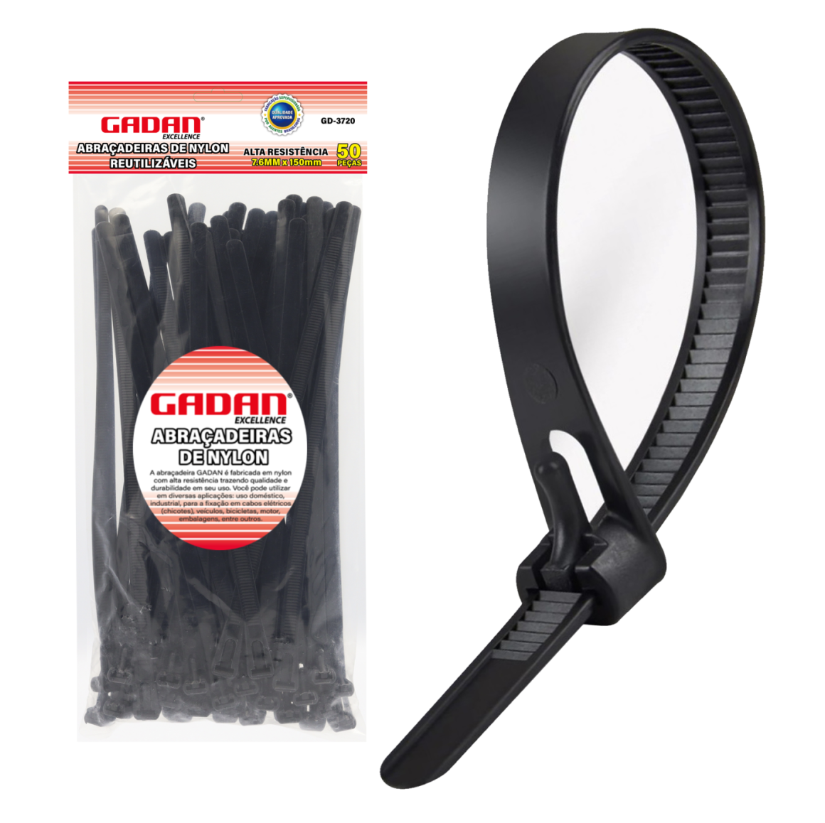 GD-3720 - ABRAÇADEIRAS DE NYLON REUTILIZÁVEL C/50UN 7.6 X 150MM