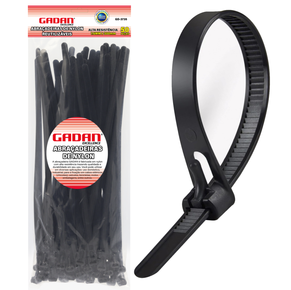 GD-3735 - ABRAÇADEIRAS DE NYLON REUTILIZÁVEL C/50UN 7.6 X 300MM