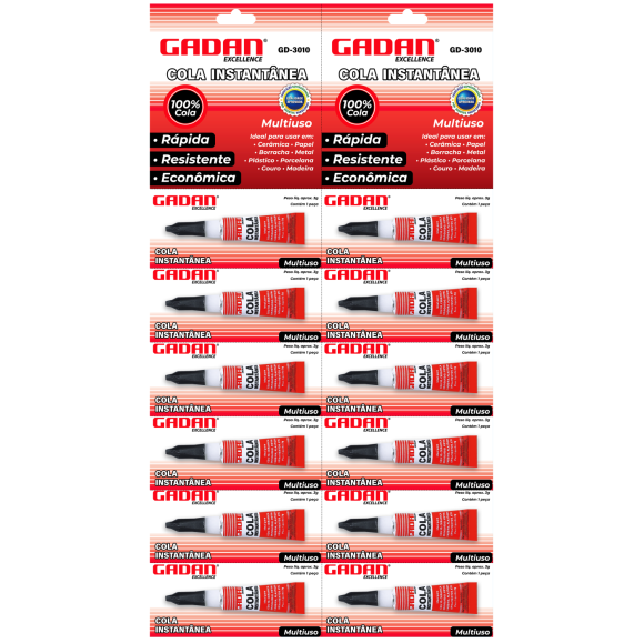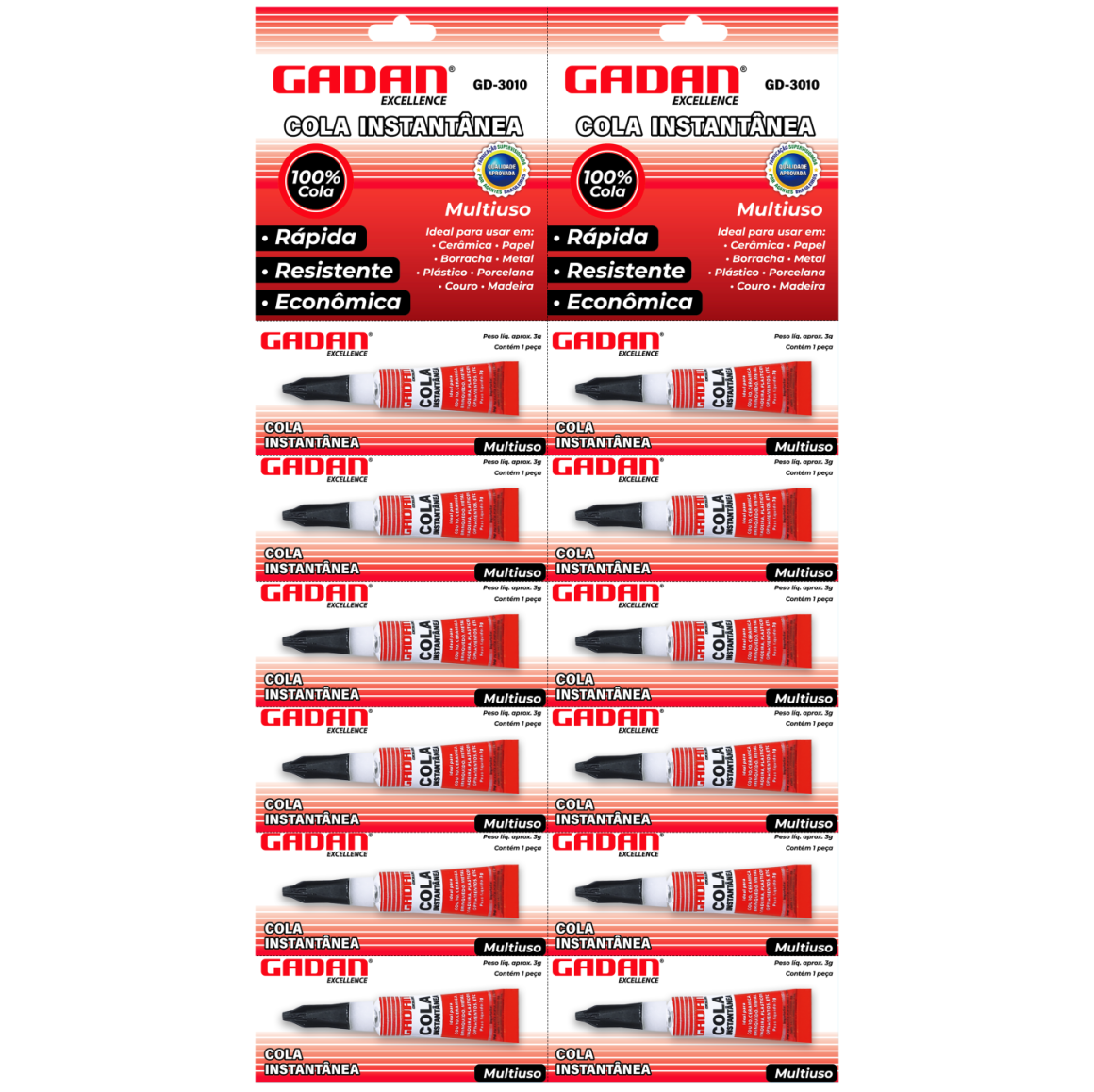 GD-3010 - CARTELA COM 12 PEÇAS DE COLA INSTANTÂNEA