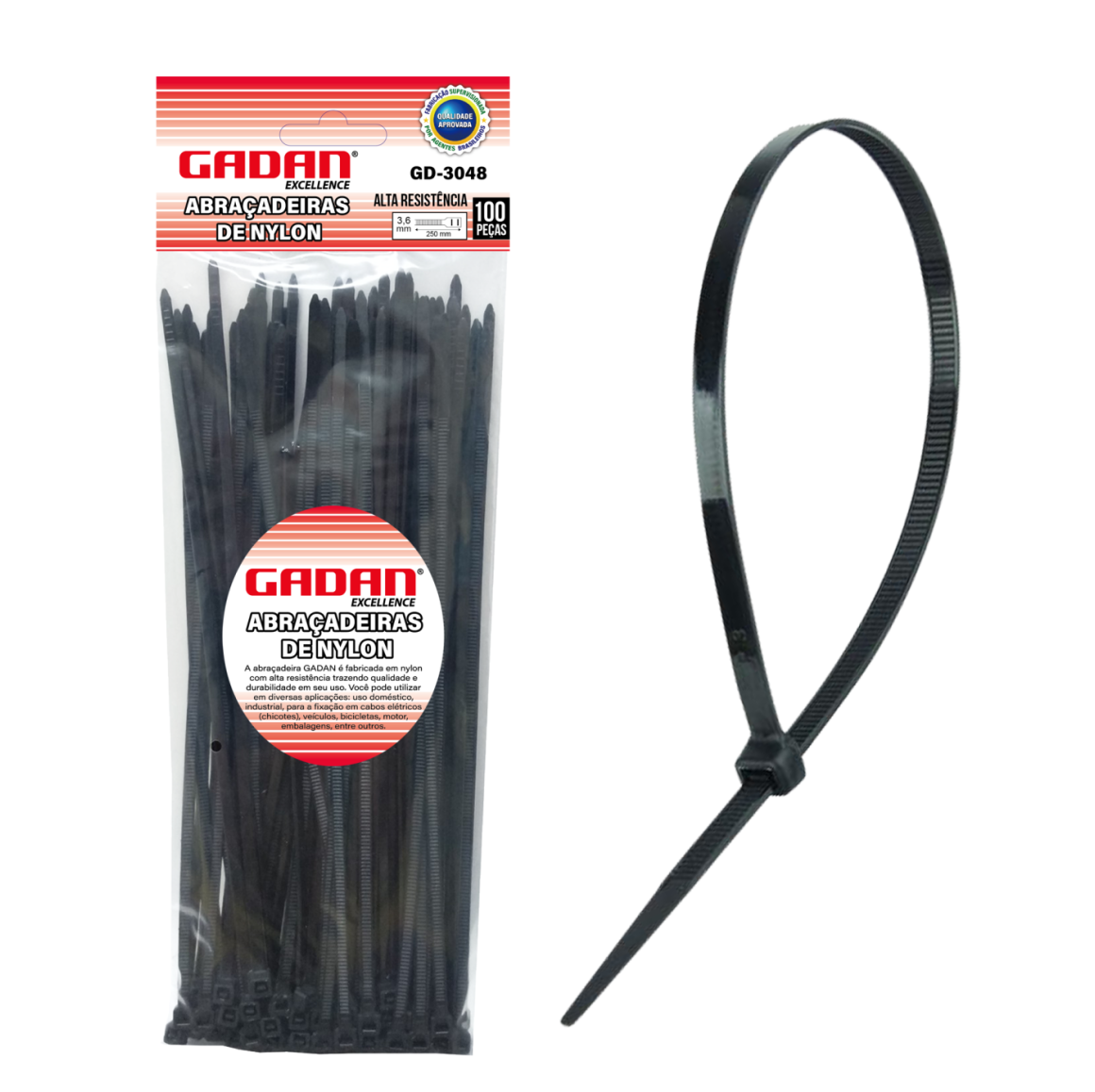 GD-3048 - ABRAÇADEIRAS DE NYLON 3.6MMX250MM C/100 PCS