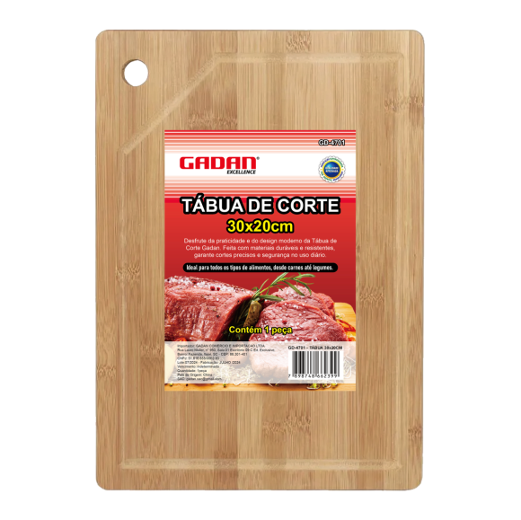 GD-4701 - TÁBUA DE BAMBU PARA CORTAR ALIMENTOS 30X20CM