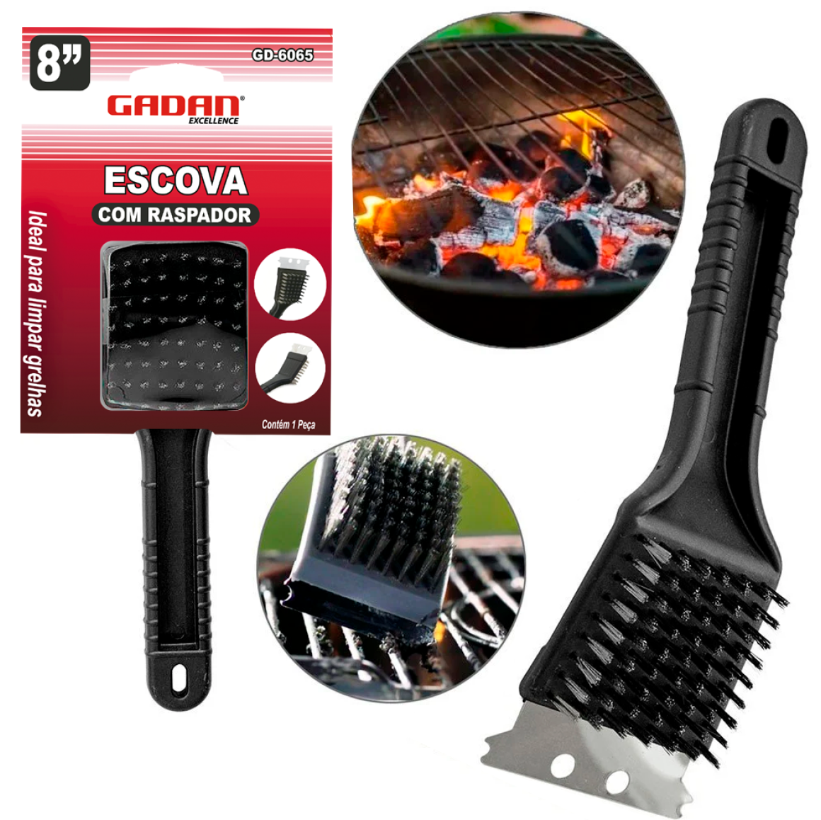 GD-6065 - ESCOVA LIMPA GRELHA 8" COM RASPADOR