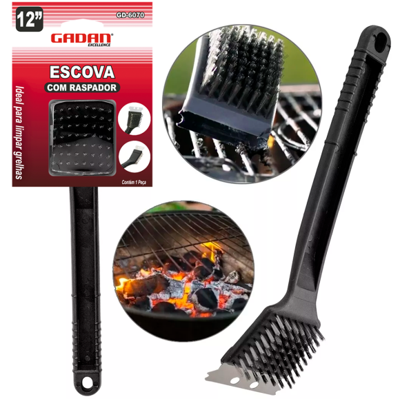 GD-6070 - ESCOVA LIMPA GRELHA 12" COM RASPADOR