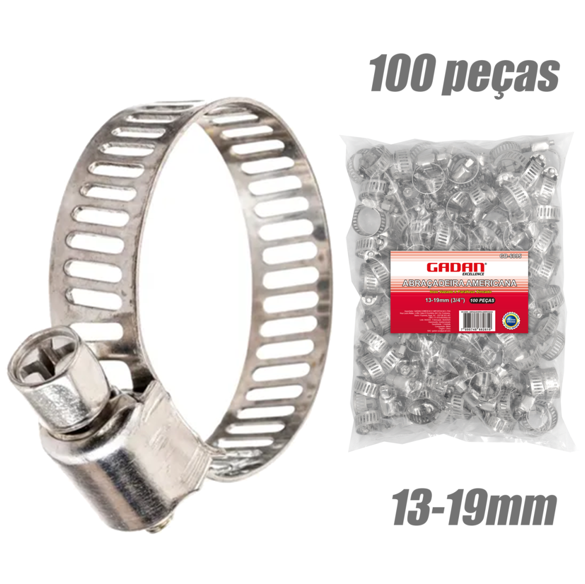 GD-6095 - ABRAÇADEIRA AMERICANA 13-19MM EM PACOTE COM 100UN.