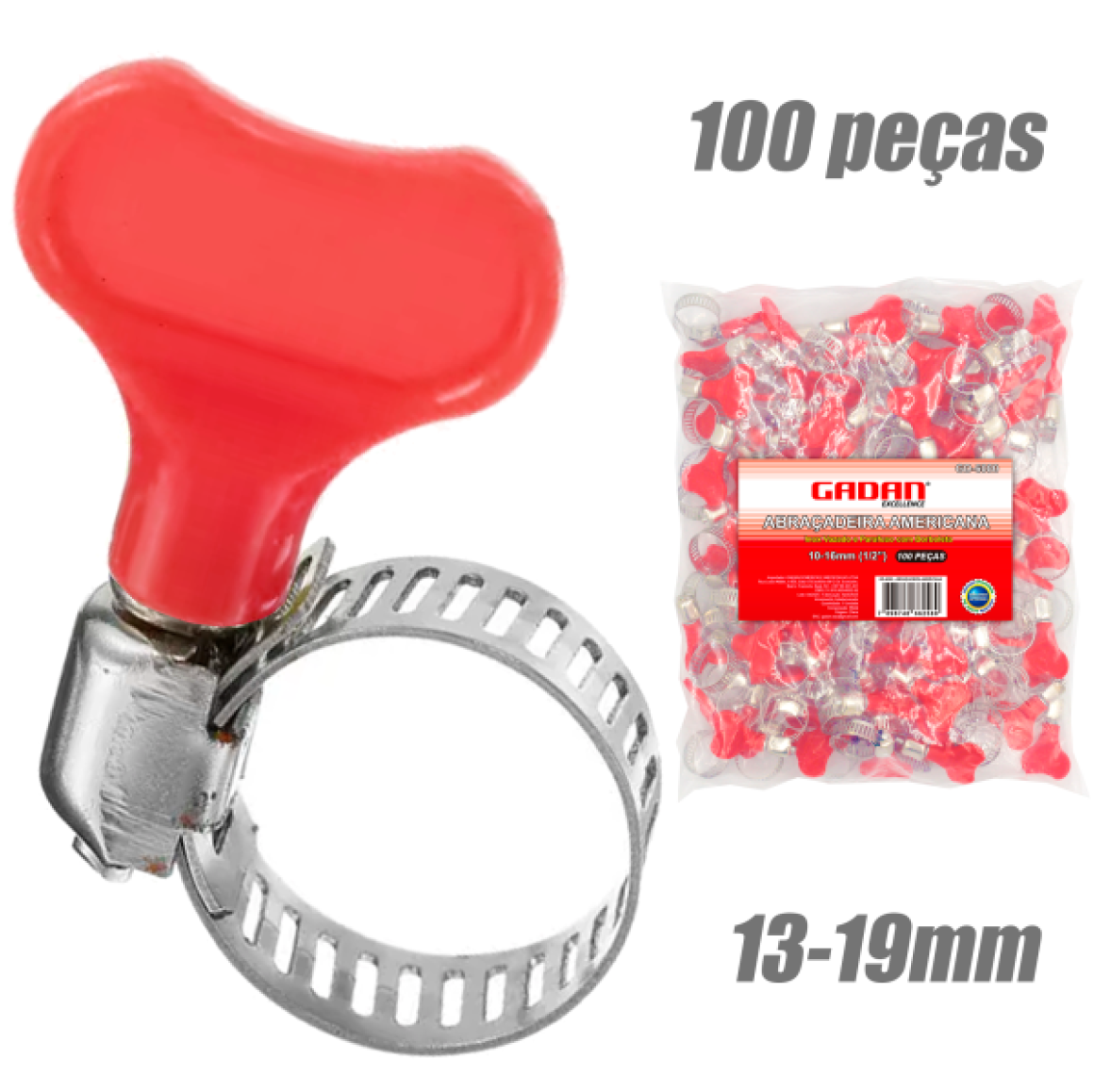 GD-6085 -ABRAÇADEIRA AMERICANA 13-19MM COM BORBOLETA EM PACOTE COM 100UN.