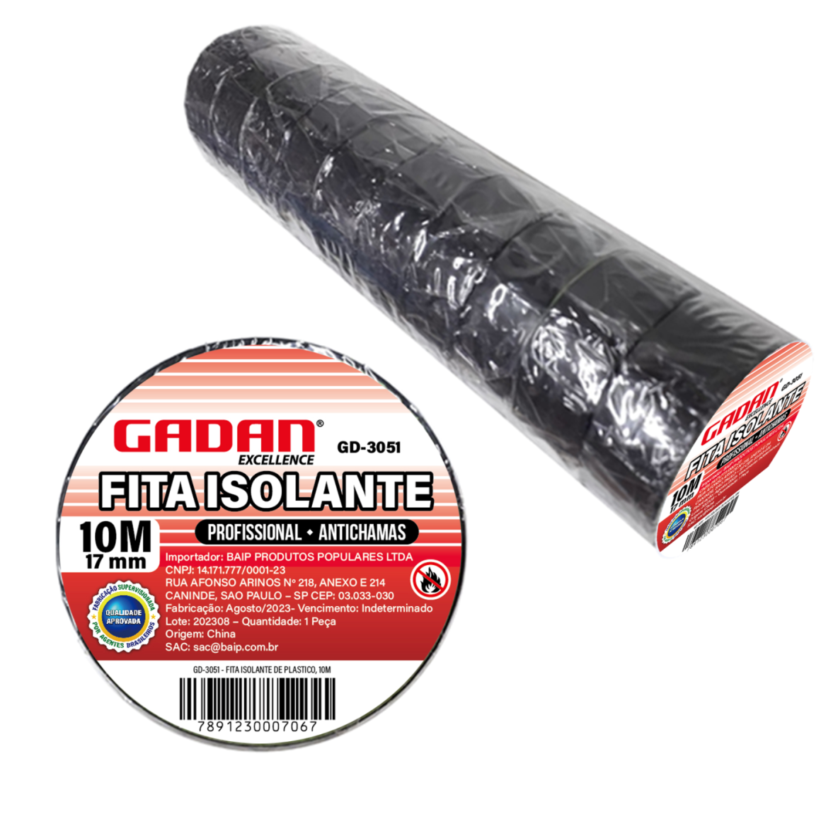 REF: GD-3051 FITA ISOLANTE 10 METROS EM TUBO C/ 10 ROLOS