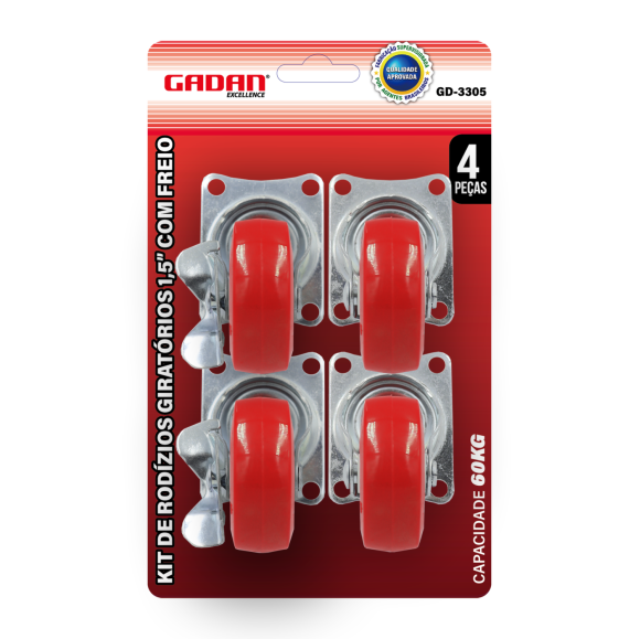REF: GD-3305 RODIZIO GIRATÓRIO 1,5" COM FREIO 4 PCS